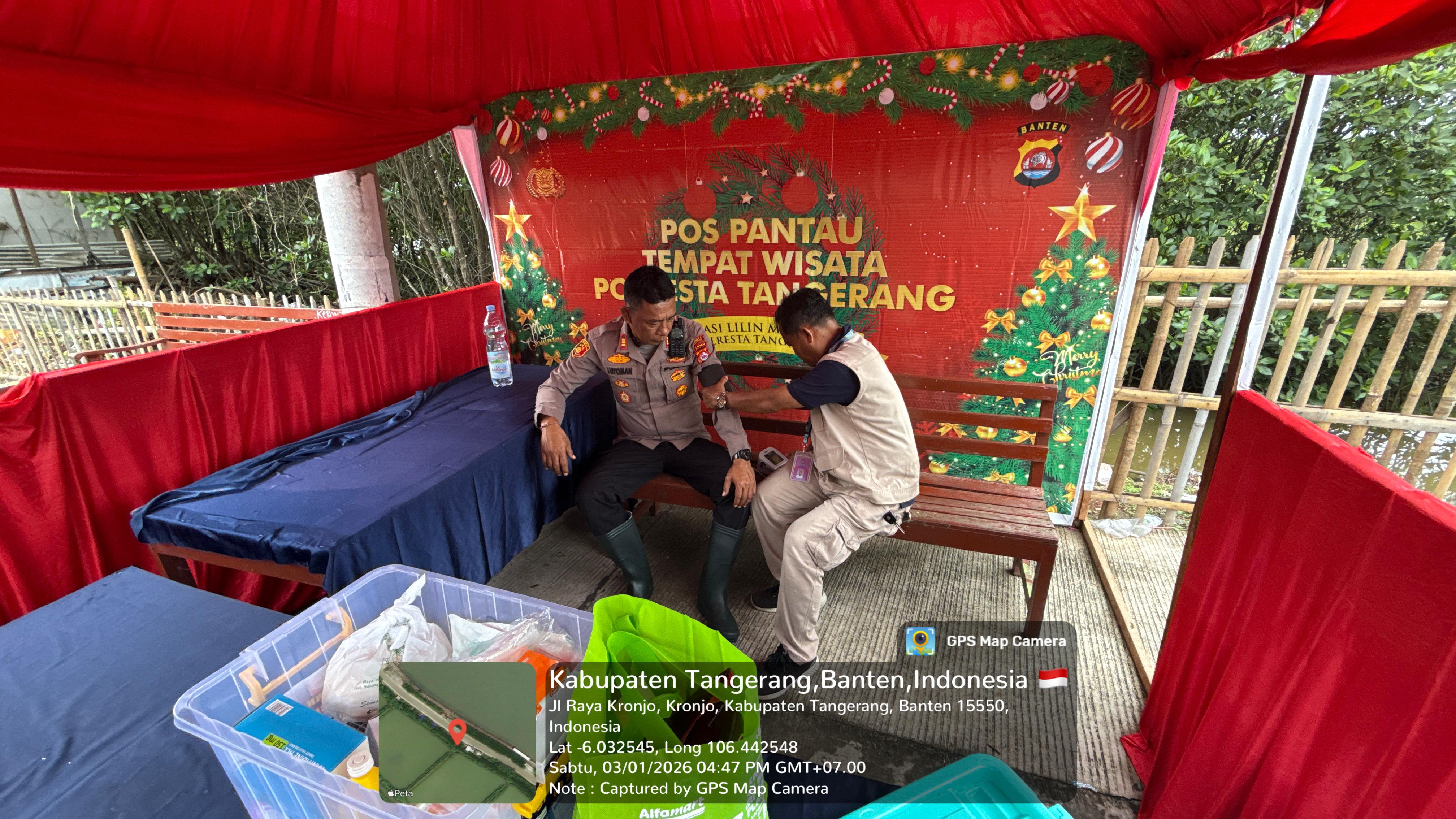 Dalam rangka pengamanan Natal dan Tahun Baru (Nataru) 2025, jajaran Polsek Kronjo, Polresta Tangerang, Polda Banten melaksanakan pemantauan di kawasan Wisata religi Pulo Cangkir, Desa Kronjo, Kecamatan Kronjo, Kabupaten Tangerang, Sabtu (3/1/2026).