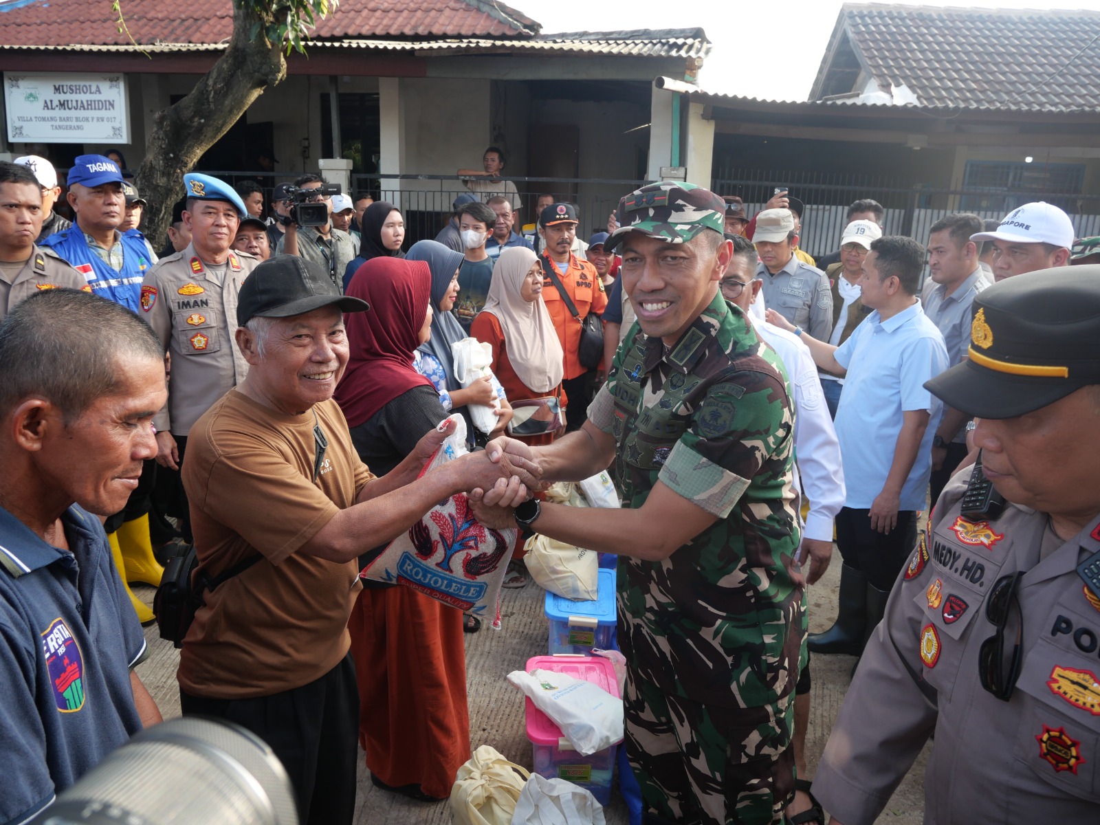 Momentum haru terlihat saat rombongan Forkopimda, di bawah koordinasi lapangan Dandim 0510/Trs, menembus genangan air menggunakan perahu karet untuk menjangkau Warga yang masih terisolasi di Perum Villa Tomang Baru.