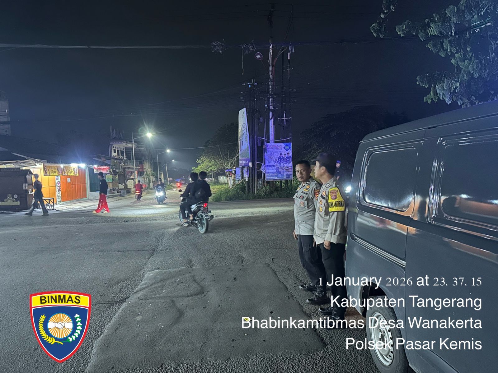 Guna menjaga situasi keamanan dan ketertiban Masyarakat (Kamtibmas) tetap kondusif, jajaran Polsek Pasar Kemis Polresta Tangerang melaksanakan Patroli Mobile dan monitoring Wilayah pada Kamis malam (1/1/2026).
